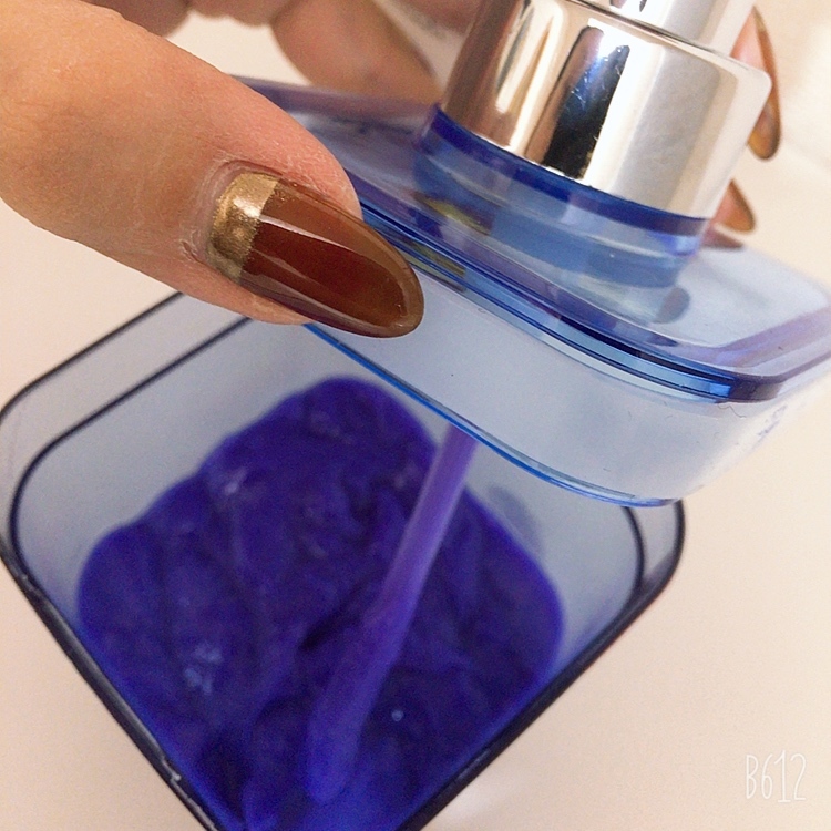青いボトルに入れたので
