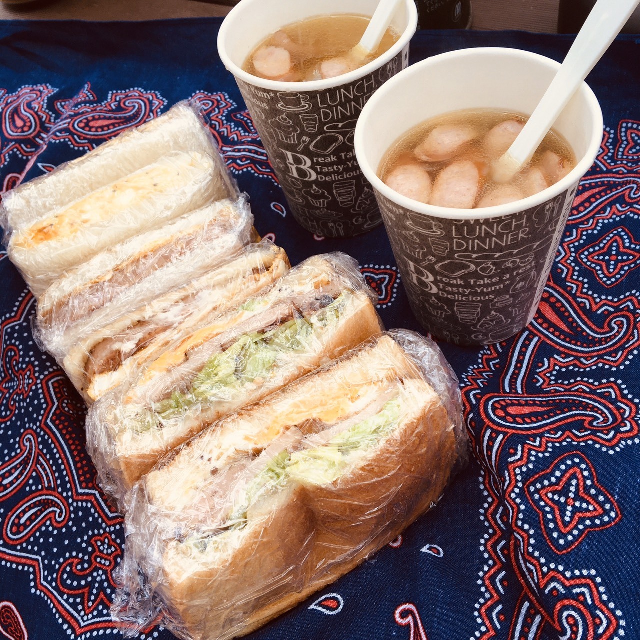 サンドイッチとスープ持参して