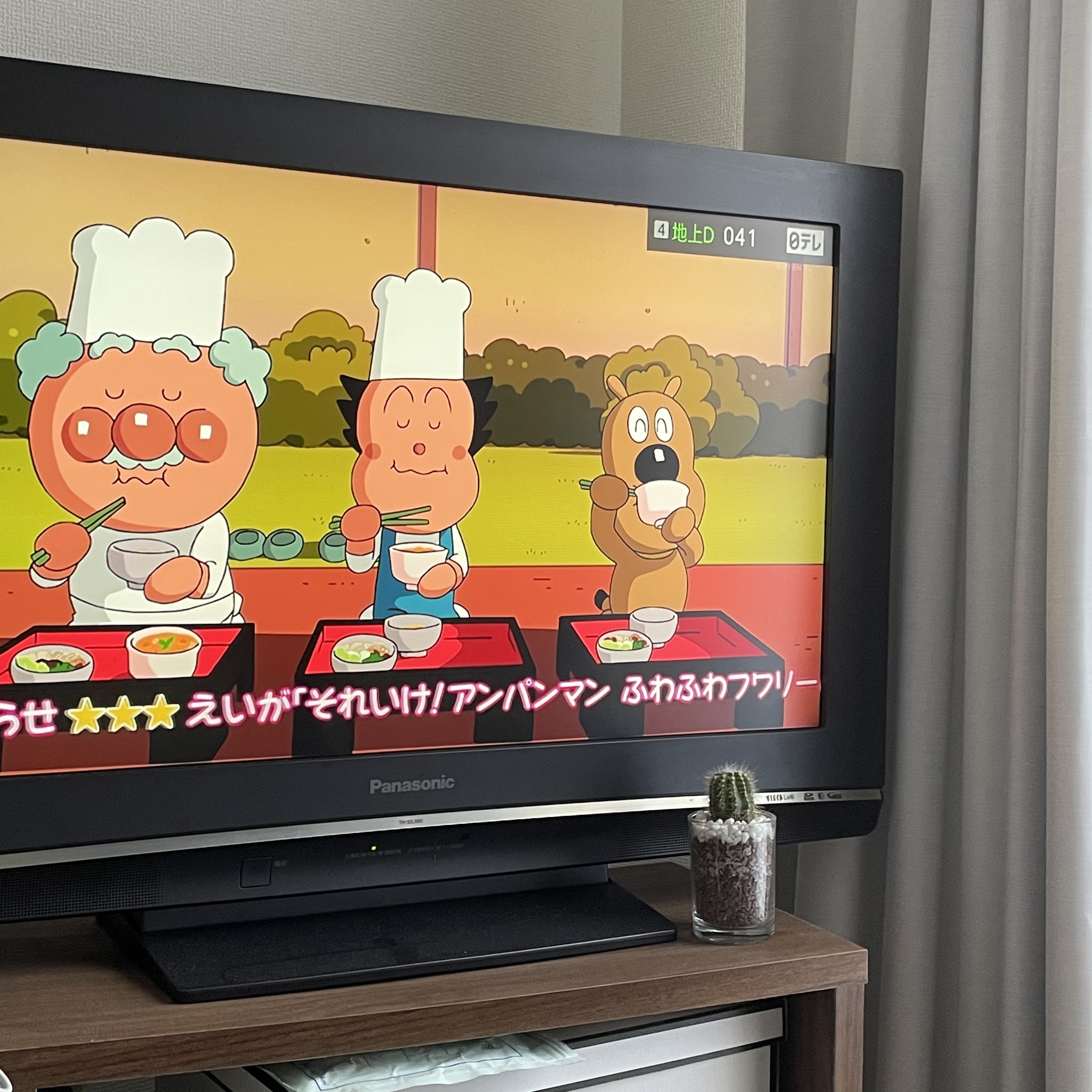 金曜日はちょうどアンパンマンがやっているので