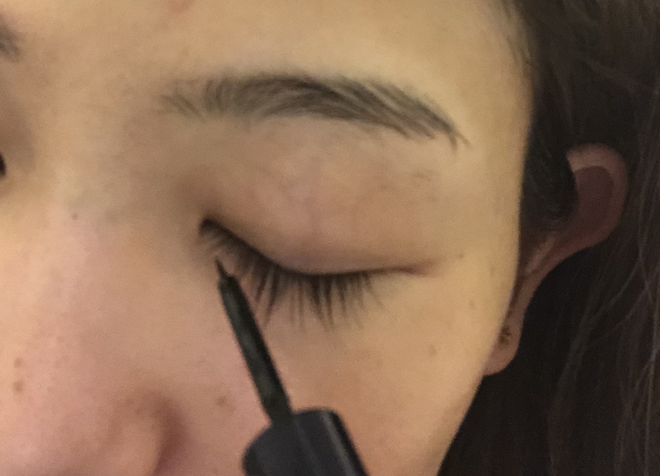 こうやってまつ毛の生え際に塗ります!